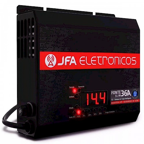 JFA FONTE CARREG DE BATERIA 36A SLIM C/VOLT. E AMP.