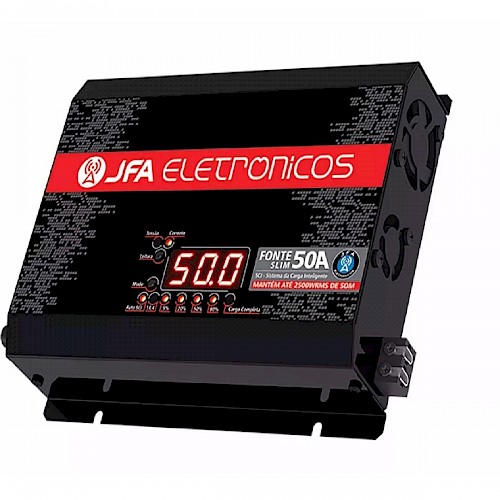 JFA FONTE CARREG DE BATERIA 50A SLIM SCI C/VOLT. E AMP.