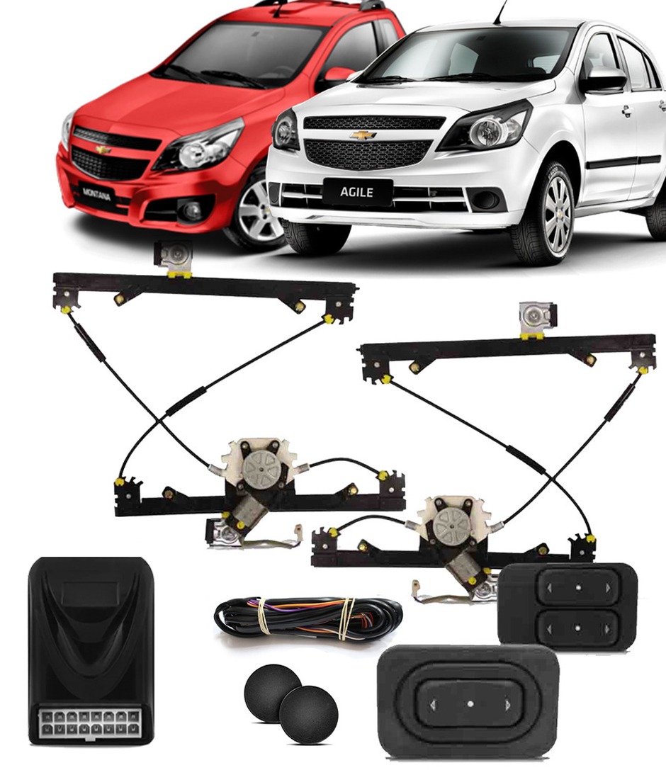 Kit de Vidro elétrico, Acabamento original, 4 portas dianteiro, sensorizado, para GM Ágile.
