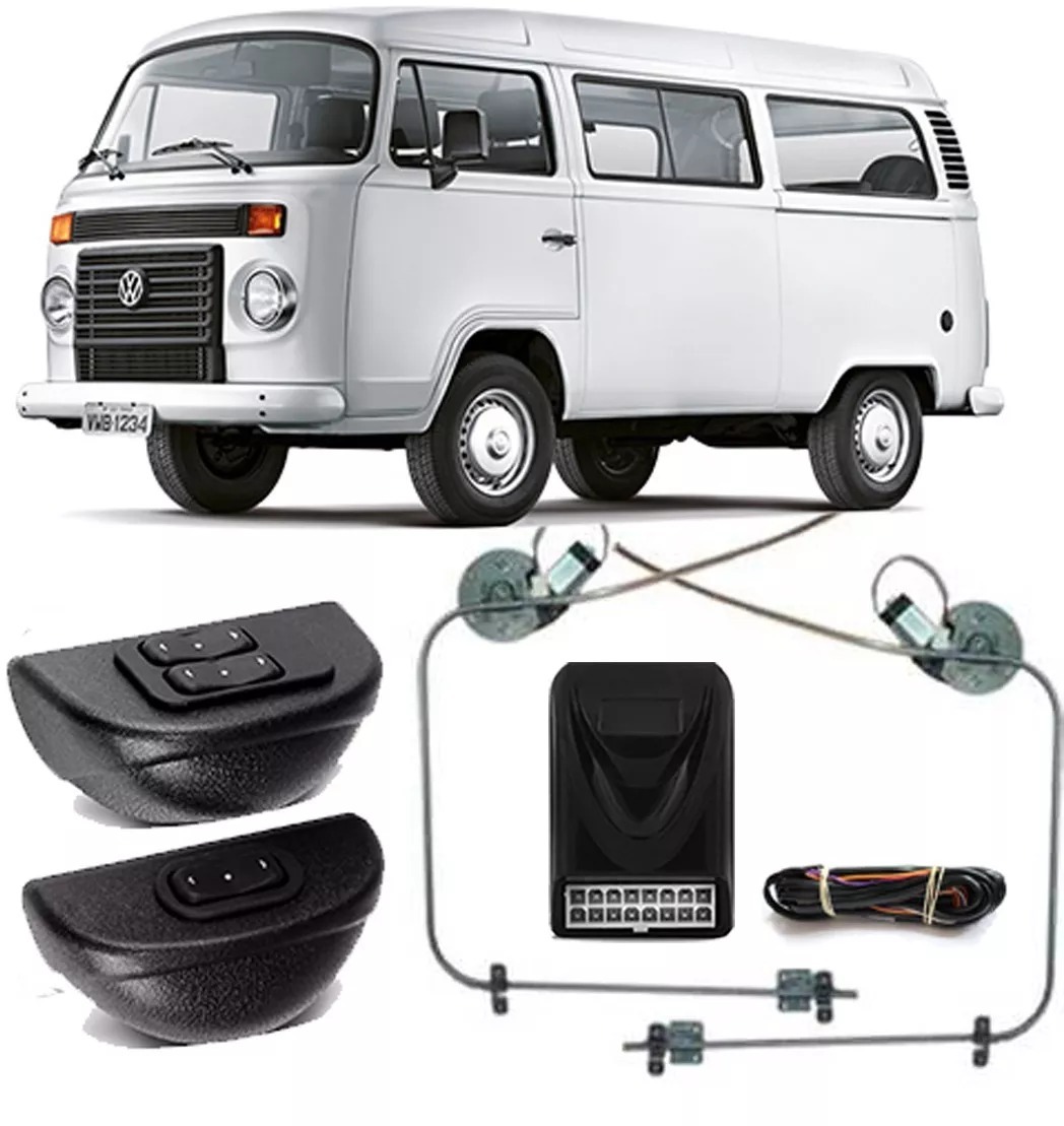 Kit de Vidro elétrico, VW Kombi 2 portas, acabamento alternativo porta, sensorizado.