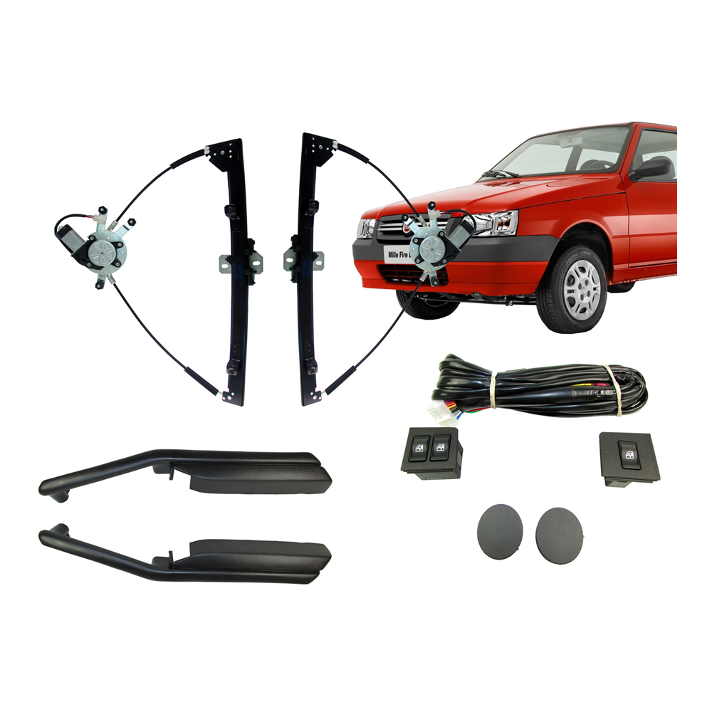Kit de Vidro elétrico, Fiat Uno, 2 portas, acabamento original, led verde, simples.